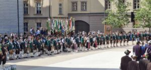 2025 Festakt-75-Jahre-BTSK-50-Jahre-Alpenregion in Insbruck. Die Kompanie Garmisch stellte dabei die Bayerische Ehrenkompanie mit Trommler, Musik und Salutzug