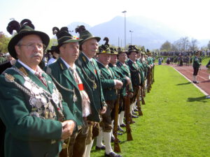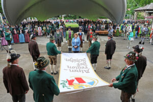Die Kompanie Garmisch war als bayerische Ehrenkompanie, mit Trommlerzug und Musikkapelle geladen. Nachdem Lt. Hans Ruf nach 32 Dienstjahren seinen Posten als Salutzugführer an Lt. Hans-Jörg Vierthaler übergeben hatte, durfte dieser, vor großer Kulisse, das erste Mal den Salvenzug führen. Der sauber ausgeführte Ehrensalut und das präzise Auftreten der Garmischer fand unter den kritischen Augen der anwesenden Schützen höchste Anerkennung!