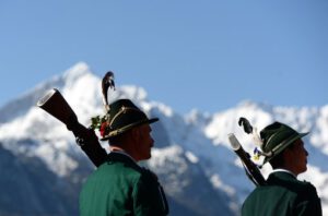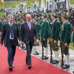 2025 Ehrenkompanie beim Empfang des Bundeskanzlers Friedrich Merz mit Ministerpräsident Söder am Eibsee in Grainau