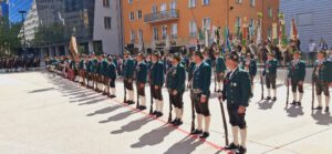 2025 Festakt-75-Jahre-BTSK-50-Jahre-Alpenregion in Insbruck. Die Kompanie Garmisch stellte dabei die Bayerische Ehrenkompanie mit Trommler, Musik und Salutzug